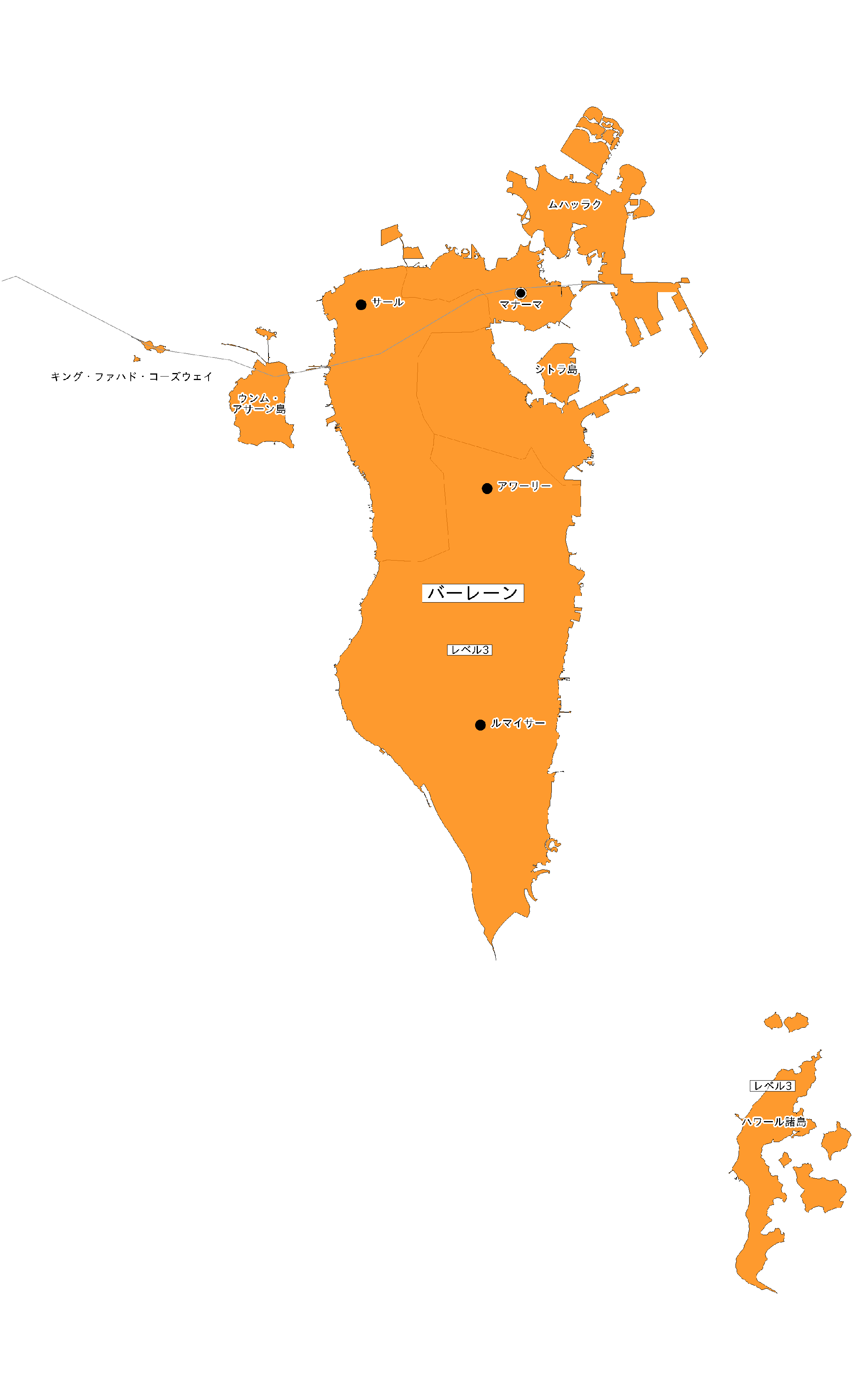 ●こうした状況を受け、バーレーン全土の危険レベルをレベル3(渡航は止めてください(渡航中止勧告))に引き上げます。